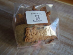 SUGITORAのクッキーの端っこも大ちゃんから。私、通常のクッキーよりも端っこの方が好きだわーー。ちょっと焼きが強かったり、抜き跡の硬い部分が多いのです。