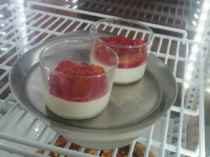 ブラッドオレンジのパンナコッタは、バニラビーンズ入りのふるふるの柔らかさのパンナコッタに、生の国産ブラッドオレンジをたっぷり乗せて、ブラッドオレンジ果汁を煮詰めたシロップをかけて仕上げてます。さっぱりメニュー、昨日と今日、たくさん出ました。