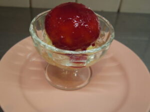 黄金桃(おうごんとう)のピーチメルバ。小ぶりなので、小さめの器でちょうど納まりが良い感じです。桃もそろそろ終わりかなーっという頃に、ブラムリーが届くお知らせが来ました。暑いですが、季節は秋に突入していくのだなーと届く果物でも感じます。明日も10時~18時までお待ちしています!