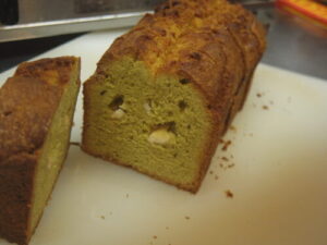 ピスタチオとホワイトチョコのケーキは、袋詰めの焼き菓子で今日からお店に並べました。ピスタチオペーストを混ぜ込んだパウンドケーキ生地に刻んだホワイトチョコを混ぜ込んでます。明日も10時~18時までお待ちしています!