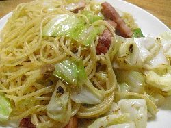 なるべくちゃんと料理、とは思うものの、麺類で済ましてしまう事もよくある。この日は塊のベーコンを大きくカットして、キャベツと一緒にパスタに。にんにくと鷹の爪と塩で味付け。お腹ペコペコだったので、麺は相変わらず多めの120g。ペラペラのベーコンはピザトーストにはいいけど、パスタには塊のヤツの方が美味しいねぇ。
