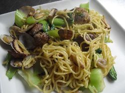 アサリと青梗菜で塩焼きそば。アサリの旨みを麺が吸って美味しいです。針ショウガたっぷり入れて、ごま油を利かせて調味料は塩のみで。適当な日は、盛り方もかなり適当ですねぇ。