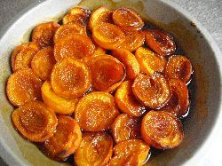 あんずでもやってみよう。生のあんずにキャラメルかけてじっくりオーブンで焼く。