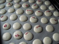 こちらは焼き菓子セット用ではなくて、カフェのケーキ用のマカロン。雨なので、工房は除湿機登場。マカロンは焼く前に乾燥させるので、雨の日は作りにくいんだけど、仕方ない。