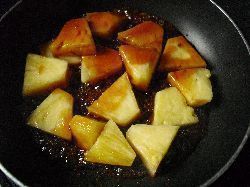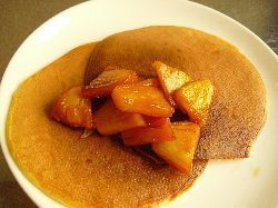 もうちょっとキャラメルソテーにしたのを試作。早速パンケーキに乗せて食べてみる事に。半分は一日置いて明日、再度試食。カフェで出すメニューは必ず一日置いた同じ状態での試食が必須。
