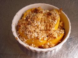 オートミール入りのクランブルを乗っけてみた。熱々を食べるのは我慢して、明日馴染んだ所を試食予定。皮剥きカットしたものになるとしても、1人分は半割り分は使用する予定(アイスも乗せる予定)。黄金桃、たっぷり食べて頂きますよー。