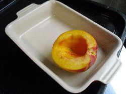 9月3日(月)のカフェ用の試作(ギリギリ過ぎる)を続行中。長野県産の黄金桃を使ったベイクドピーチだけど、割とアメリカとかヨーロッパのレシピを見ると半割りで種のくぼみにクランブルとか木苺のソースとかを入れるっていうのが多くて、ビジュアル的にもそそる!っていう感じ。昨日、半割りにしたのを一晩置いて、今朝の朝ご飯にパンケーキ乗せて焼いてみた。種のくぼみに黒ぶどうソースを入れて、バニラアイスのっけ。黄金桃が、おおおいしーーーい!しかし、ただ一点気になるところが、皮。ちょっと口の中で残る。うーん、皮を剥いて半割りにすると、水分が皮側からも出て、柔らかくなっちゃって半割りの状態で自立しないんだよなぁ。