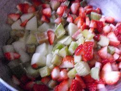 ミックスジャムは昨日色々と試作をしたのです。ルバーブは青りんごの香りに似てると言われます。なので、青りんごが届いた時にルバーブと合わせたいなぁと思って、「ルバーブ」「グラニースミス(青りんご)」「苺(熊本県産紅ほっぺ)」「ブルーベリー(長崎県産)」の4種類を入れて。