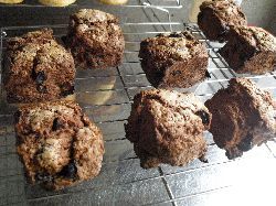 スコーンはチョコ味のものを2種類。出来立ての自家製伊予柑ピールを刻んで入れた「伊予柑チョコ」。もう1種類はオーガニックのドライサワーチェリーを入れた「チェリーチョコ」。このサワーチェリー、美味しいので今度チョコ味グラノーラに入れてみよう。