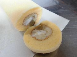 和栗のロールケーキは、自家製のマロンペーストで作った和栗クリームと生クリーム、渋皮煮を使って作ります。巻く前の写真が消えちゃったので、渋皮煮のアップ。