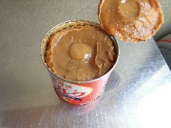 チーズケーキに乗せるトフィーはコンデンスミルク缶を数時間お湯の中でコトコト煮るとコックリとしたキャラメル色になります。冬は石油ストーブの上で作れるので、有難いー。今日のも良い色に仕上がってます。