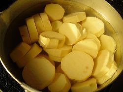 皮を剥いて、カットしてアク抜き。芋は大好き。和風のお菓子なので、年明けの方が良かったかなーっと思いつつ。