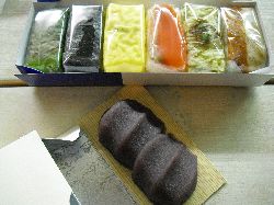 いつもいつも有難うございます!K様からお寿司と赤福。つまみやすいお寿司、合間合間に頂きました。しかし赤福、こーんなに可愛いサイズのがあるんですねぇ・・。ちょうど、朝イチにハナさんと和菓子食べたいですねぇ、と言ってたので、口が和菓子。以心伝心でしょうか(笑)。有難うございました。