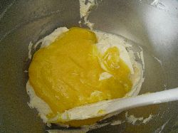 レモンクリームと合わせる。いつものレモンカードより酸味強めで、ちょっとだけコーンスターチ入り。美味しいクリームが出来た。これ、マカロンのクリームにしてもいいな。