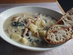 クリームシチューにトムソーヤの京小麦のカンパーニュの端っこ。