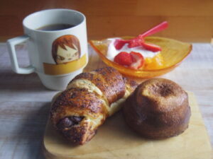 カフェで余ったファーブルトン、餡クロワッサン、オレンジ苺ヨーグルト。