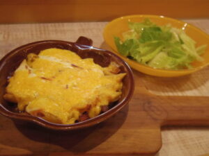 ラザニア、サラダ。
