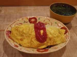 オムライス、三つ葉としめじの澄まし汁。
