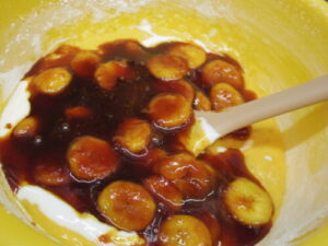 バタースコッチバナナケーキは、バターを加えたキャラメルでソテーしたバナナをたっぷりソースごとケーキ生地に混ぜ込んでいきます。ほんのちょっとシナモンも入ってます。