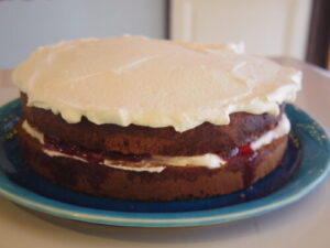 たらーんっとアメリカンチェリーの赤いところがたれてるのが美味しそう、っとサイドはナッペしないでおこうかと思ったのですが、やっぱりクリームがあった方が美味しいな、と。