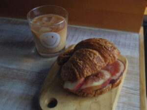 シティベーカリーの全粒粉クロワッサンで、こしあんイチジクサンド。当たりのイチジクが手に入ると、トーストに乗せたりサンドにしたりする。