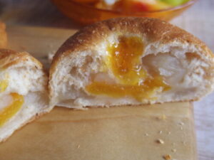 白こしあんにアンズのコンポートが入った、あんずあんぱん。白あんがかなり甘さ強めなので、朝ごはんより渋いお茶とオヤツに合いそうな感じ。