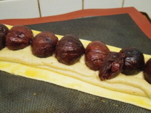 1カットに1粒入るように、と思って乗せました。アーモンドクリームにも和栗ペーストがたっぷり入ってます。