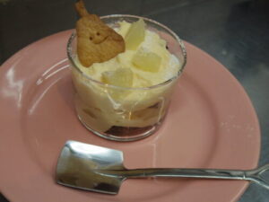 トライフルは今回はグラスに入れてます。洋梨は山形県産のラフランスをコンポートにして使ってます。明日も10時~18時までお待ちしています!