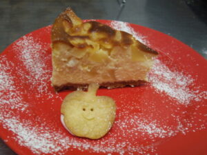 柚子と林檎のベイクドチーズケーキは、柚子皮と果汁を入れたチーズケーキ生地に、ゆず果汁と柚子皮で林檎を煮た林檎を合わせてます。