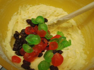 写真はクリスマスフルーツケーキ。シンプルなパウンドケーキ生地に緑と赤のドレンチェリー、自家製のラムレーズンを入れました。定番のフルーツケーキはたっぷりラム酒が入ってるのですが、こちらはラムレーズンは入ってるものの、そこまでお酒の風味はしません。昔懐かしい感じにできたかなーっと思います。が、もうちょっと緑と赤を満遍なく散らせるようにしたいところ。
