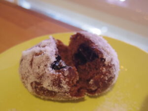 試食ーー。生地の色が分かりにくいので、揚げるの難しかった!チョコレートドーナツは17時台で完売、シュガードーナツは最後残り1個で終了となりました。明日も11時頃、シュガードーナツ出来上がる予定です。明日も10時~18時までお待ちしています!
