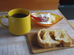 ameen’s ovenの伊予柑トースト、洋梨ヨーグルト。