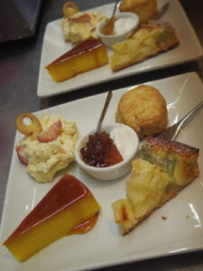 1月27日(月)のイートイン限定メニューは、スフレチーズケーキ、苺のトライフル、カボチャのプリン、林檎と焼き芋の焼きタルトです。1月末でSUGAR TOOTH cafeは9周年という事で、9周年記念プレートやります。9周年プレートには、苺のトライフル、カボチャのプリン、焼きタルトがハーフサイズで乗ります。この3種類にスコーンが付くシュガートゥースプレートもあります。スコーンはキャラメルかプレーンかお選び頂けて、プレーンスコーンの方はジャムがお選び頂けます。選べるジャムは、りんごのタタン、伊予柑マーマレード、みかんです。スフレチーズケーキは単品のみご注文頂けます。カウンター上の焼き菓子は、スコーン、キャラメルスコーン、レモンケーキ、苺のマドレーヌ、チョコレートカヌレです。チョコレートカヌレはちょっと微調整中で、もしダメだったら違うお菓子焼きます。無かったらお察し下さい。苺のマドレーヌは自家製のドライ苺をキルシュに漬けたものと、生の苺を乗せて焼こうと思ってます。