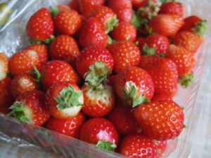 ちょっと時期が変ですが、チョコレート味のアーモンドクリームとチョコチップ入りのガレット・デ・ロワが登場します。パイ生地はプレーンなアンヴェルセ生地です。写真はイートイン用スコーンに添える用のミックスベリージャムに使った小ぶりな苺。チーズケーキにはもうちょっと大きめな苺を使います。イートインでのスコーンの選べるジャムは、ミックスベリー、りんごのタタン、金柑マーマレードからお選び頂けます。明日から4日間、10時~18時までお待ちしています!