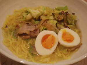 野菜炒めと茹で卵乗せラーメン。ラーメンは袋麺のラ王のちゃんぽん。やっぱ袋麺のスープは舌が痺れる感じがして、頻繁に食べちゃイカンという気持ちになるなー。手抜きしたい時の切り札に残しておく。