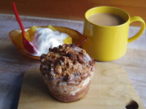 RAUのブリオッシュ、パインヨーグルト。ブリオッシュという商品名だったけど、中にラムレーズンやナッツも入ってて、パネトーネみたいな感じ。トースターで温めたら、バターが溶けだしてきて、バターの池がタプタプできるくらいのバター感。カロリー爆弾なだけに、めっちゃ美味しかった。