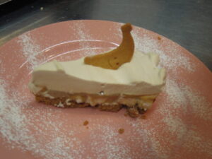 2月22日(土)のイートイン限定メニューは、苺とコンデンスミルクのレアチーズケーキ、コーヒークリームのバノフィーパイ、焼き芋とキャラメルのタルト、温かいチョコレートケーキに自家製ヘーゼルナッツアイス添え、です。カウンター上のテイクアウト可能な焼き菓子は、スコーン、キャラメルスコーン、ガレット・デ・ロワ・ショコラ、レモンケーキ、バタースコッチバナナケーキです。