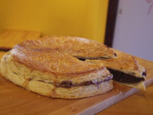 ガレットデロワはチョコレート味です。イートインのご注文分は、トースターで少し温めてお出ししています。明日も10時~18時までお待ちしています!