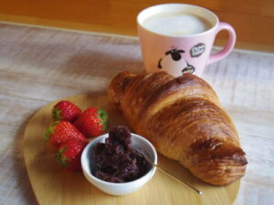 and breadのクロワッサンに粒あん、苺。