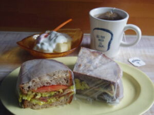 sloのカンパーニュでキャベツベーコントマトサンド、洋梨ヨーグルト。長らくカンパーニュを求め色々なパン屋さんで試してきましたが、LAND無き今、私の好きな京都のパン屋さんのカンパーニュはSloのやつかなと。酸味と柔らかさとシットリ具合が一番好みです。