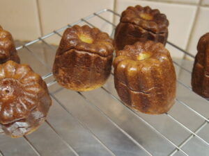 写真はキャラメルナッツバナナケーキ。以前は大きな型で焼いてたのを、今週からパウンド型で焼いてます。使ってるナッツはアーモンド、マカダミア、クルミ。サイズを変えても美味しく出来てて、嬉しい。そして、今日は朝焼いたカヌレの焼き上がりが、どうにもこうにも良くなくて、急遽メニューを変更。一晩冷蔵庫で寝かした生地を焼く前に20℃くらいの温度にしてからオーブンに入れるのだけど、ちょっと生地の温度がまだ低かったのかもしれない。それくらいしか違いが思い浮かばないのだけど、いやー、まだまだ掴みきれてないカヌレです。