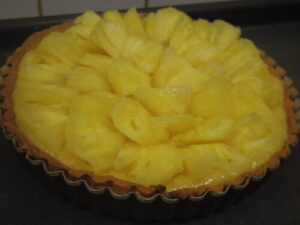 タルトは台湾パインをたっぷり使って、ココナッツ入りのアーモンドクリームと、ココナッツクランブルを合わせてます。