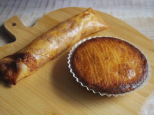Un Son Doux pâtisserieの焼き菓子2種。見まごう事なき春巻きは、中に文旦と苺が入ってて、めっちゃ美味しかった。あとピスタチオのガトーバスク。どっちも美味しかったけど、またサブレナンテは無かった。