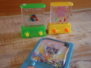 カウンター上の暇つぶしアイテム、ちょっと増えました。輪投げタイプ以外のを2つと、玉入れビーズ的なやつを追加しました。