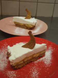写真はバノフィーパイ。いつも人気のメニューです。チョコレートガナッシュを挟むバージョンもありますが、今週はスタンダードなタイプです。