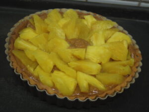 タルトは相性の良い黒糖とパイン。沖縄の波照間島の黒糖と台湾パインを使ってます。パインがめちゃくちゃ甘くて大当たりのやつでした。