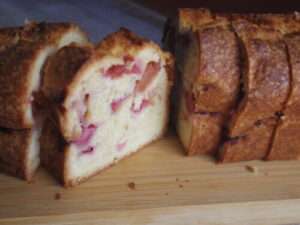 苺とルバーブとココナッツのケーキに使った苺はあまおう。ルバーブは長野県産の赤いルバーブを使いました。