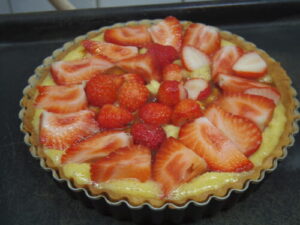 今日は蒸し暑い一日でしたが、ご来店には恵まれて、有難かったです。写真は苺とキャラメルの焼きタルト。