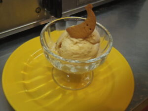 バナナとキャラメルのアイスクリームは、ほんのりラム酒の香るバナナアイスクリームとほろ苦いキャラメルアイスクリームがマーブルになってます。アイスクリームの単品のメニュー、時々出すと楽しいなーっと思います。明日も10時~18時までお待ちしています!