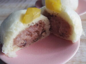 北野天満宮の横にある三平餅の赤飯饅頭。甘くもなく、しょっぱくもない、微妙な立ち位置の赤飯饅頭。時々食べたくなります。